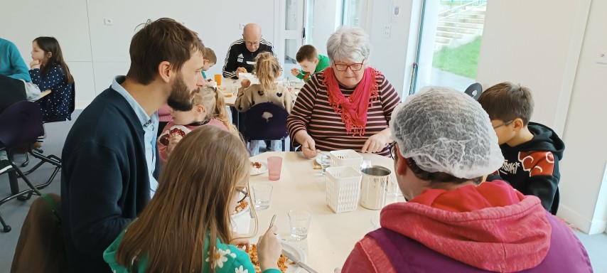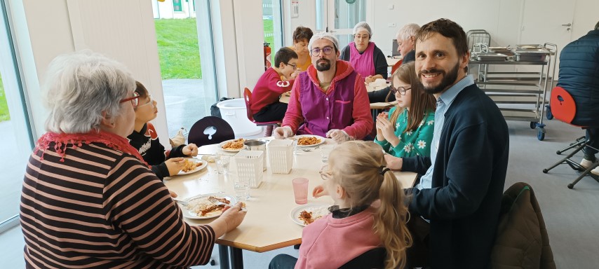 Après avoir préparé des galettes des rois, des crêpes et des amigurumi avec les aînés de la commune, les enfants les ont conviés à partager leur repas.