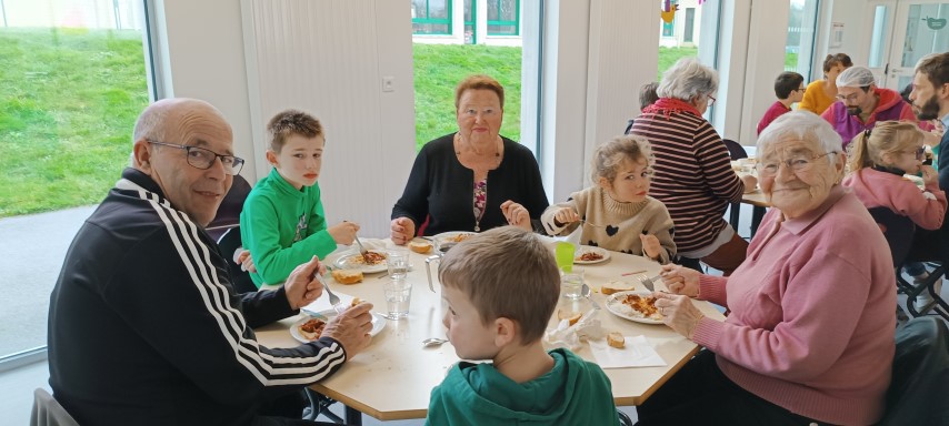 Ce moment de partage, orchestré par la responsable du restaurant scolaire et son équipe, a été fortement apprécié par les aînés, les enfants de 3 à 11 ans et les élus.
