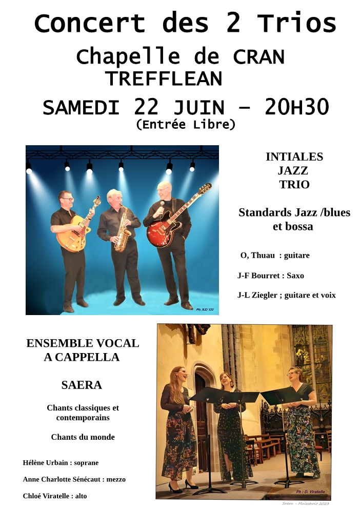 Concert 2 Trios – organisé par l’association des “Amis de la chapelle de Cran”