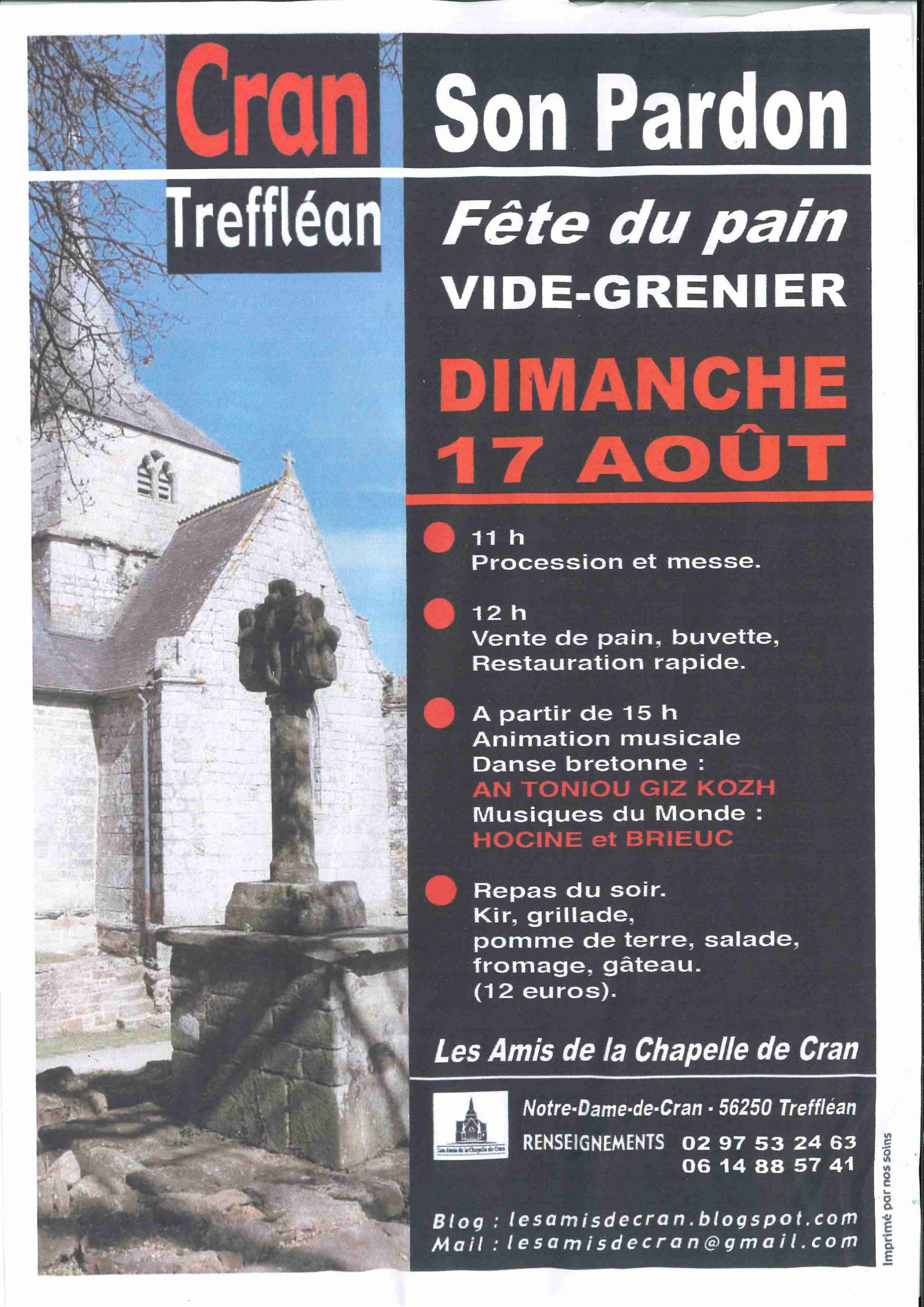 Accueil » Évènements » PARDON DE CRAN « Tous les Évènements Cet évènement est passé PARDON DE CRAN 17 août « Marché FESTIVAL TREFFESTIF » + Google Agenda+ Exporter vers iCal Détails Date : 17 août Organisateur les amis de la chapelle de Cran Lieu Village de Cran cran treffléan, 56250 France + Google Map