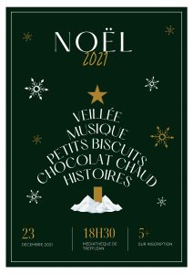 Accueil » Évènements » [ANNULÉ] VEILLÉE DE NOËL – MÉDIATHÈQUE « Tous les Évènements Cet évènement est passé [ANNULÉ] VEILLÉE DE NOËL – MÉDIATHÈQUE 23 décembre 2021 « HABITANTS DE TREFFLÉAN : QUELS SONT VOS BESOINS SOCIAUX ? [MÉDIATHÈQUE] HISTOIRES KAMISHIBAÏ » + Google Agenda+ Exporter vers iCal Détails Date : 23 décembre 2021 Catégorie d’évènement: divertissement Organisateur Médiathèque de Treffléan Téléphone : 0297531369 Lieu Médiathèque de Treffléan Place de l'église Treffléan, 56250 France + Google Map Téléphone : 0297531369