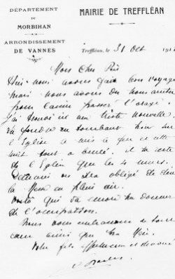 Le 30 octobre 1912, frappée par la foudre, l’église prend feu. Le maire de l’époque, Charles Mazier le Roy, de retour d’une visite à ses parents en Anjou, leur adresse la lettre ci-dessus, dont voici la transcription :
