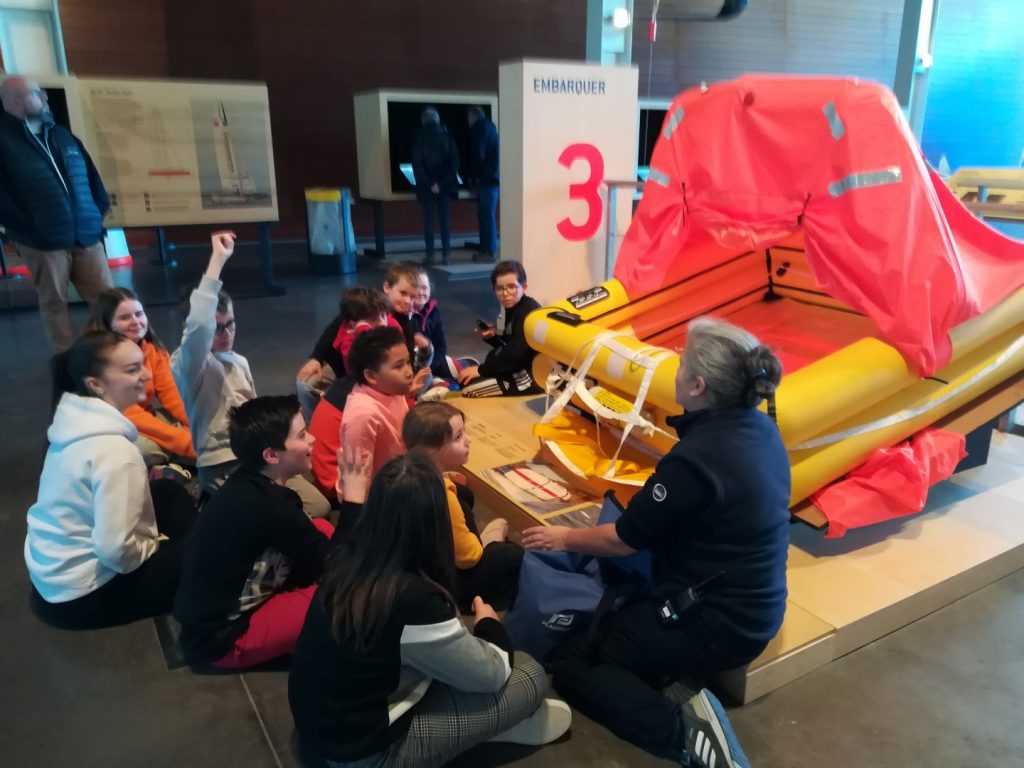 Chaque groupe d’enfant a pu découvrir les différents ateliers expliqués et animés par le personnel du musée : l’environnement et la protection des océans, la survie en mer, l’énergie à bord et la construction navale et les matériaux composites.